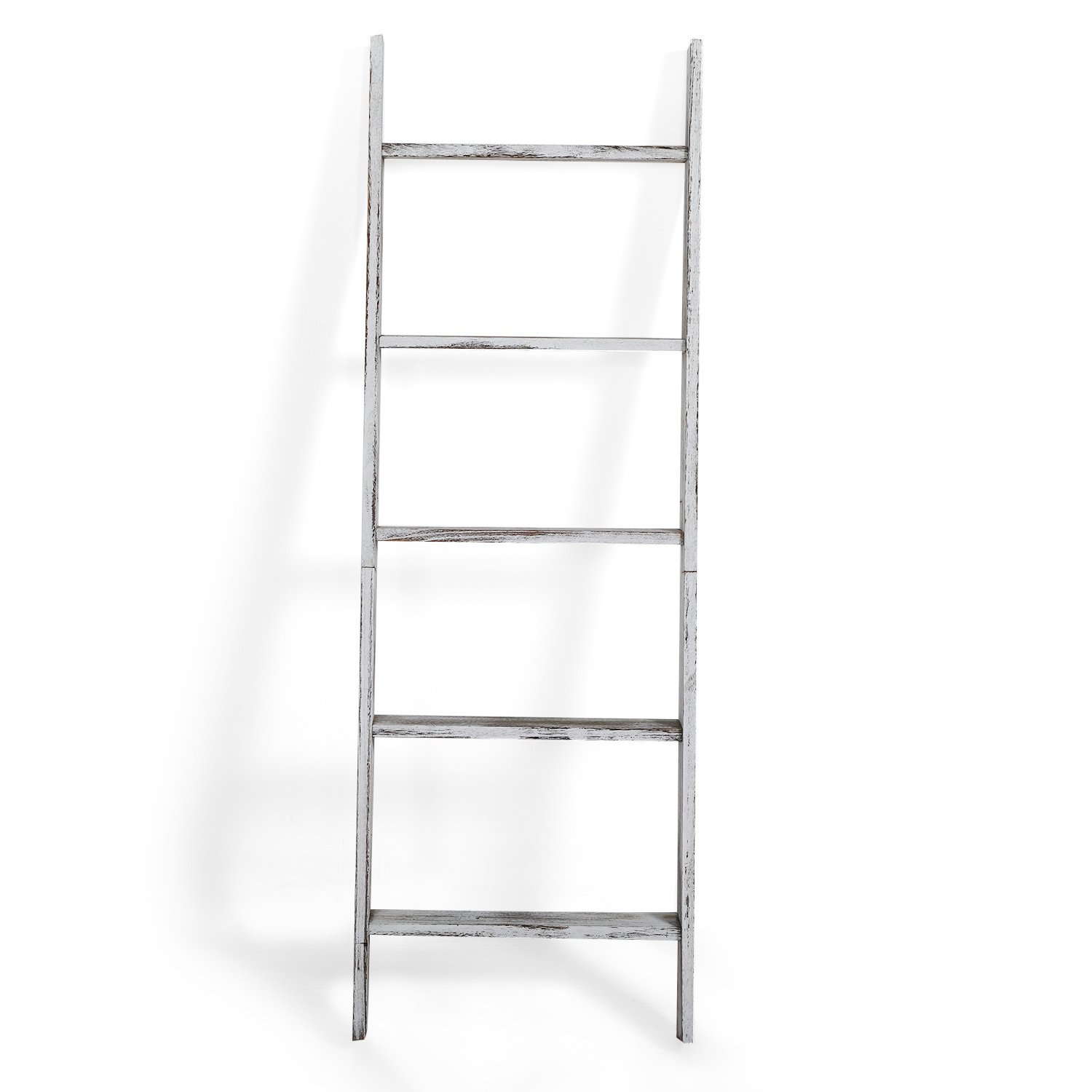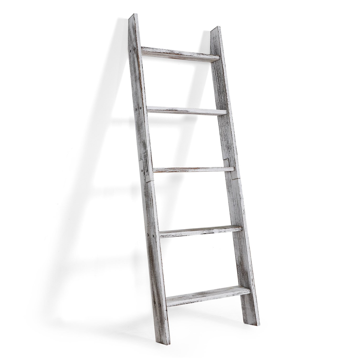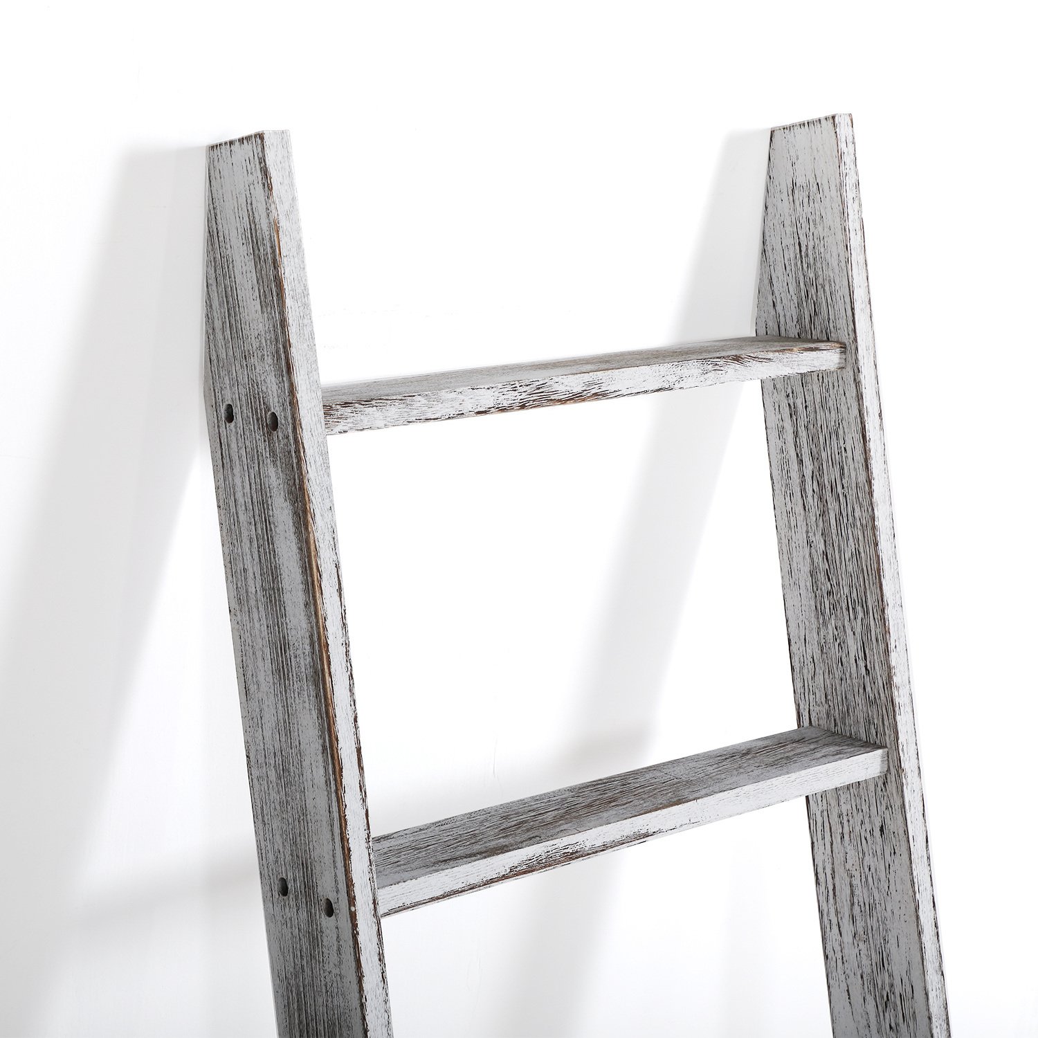 [Farmhouse Stylish Design]: Decorative country rustic wood towel hanging unit with5rungs. Shabby chic whitewashed finish creates a farmhouse feel foryour living space.