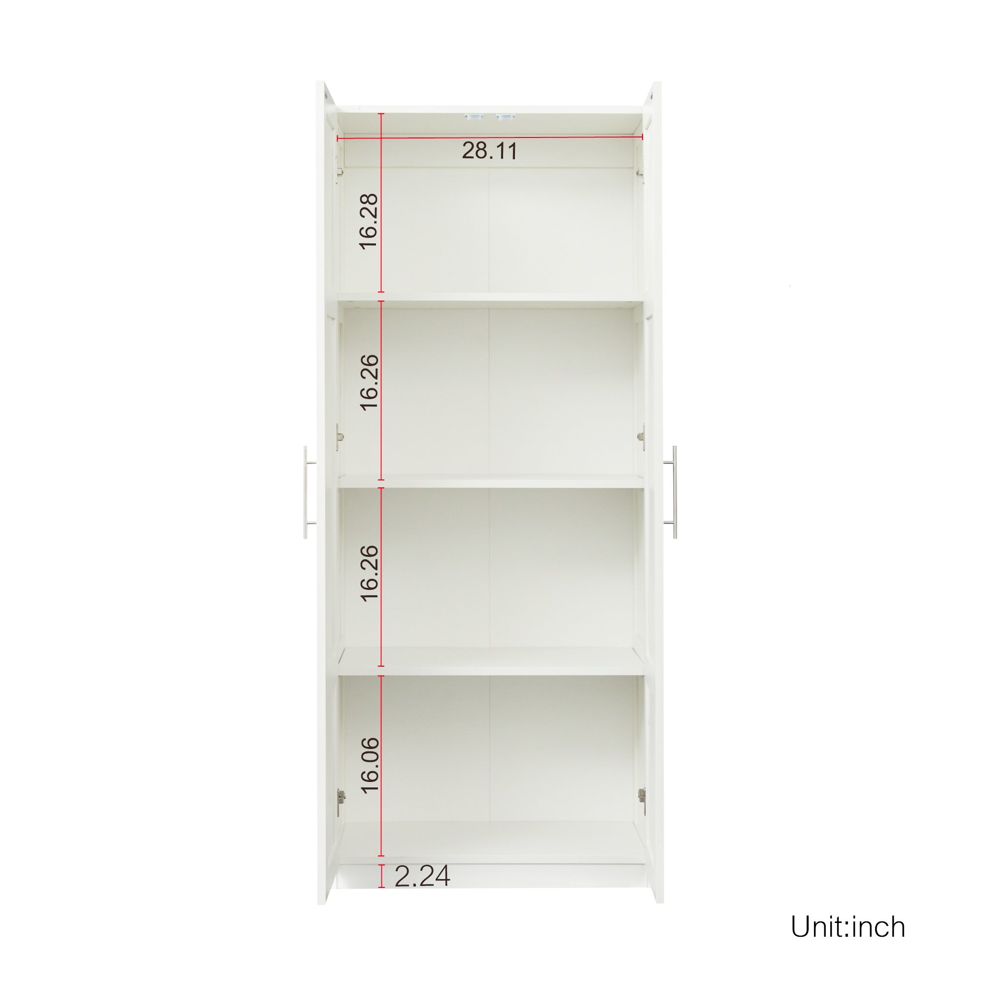 Dimensions: 29.53'W x 15.75' D x70.87'HThere are 2 doors and 3 shelves; which can provide more storage space