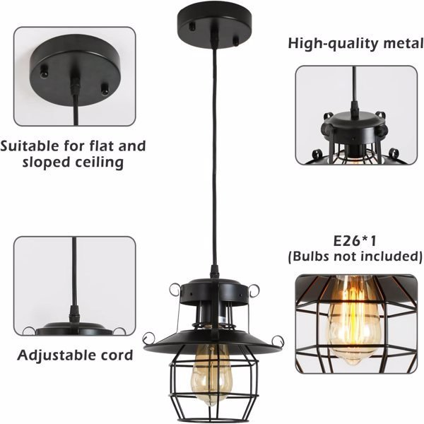 [Bulb Requirements] Black caged pendant light fixture requires 1 x E26 bulb (Max 60W,Bulbs are not included.).