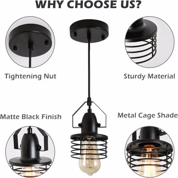 [Adjustable Height]The farmhouse pendant lighting fixture can be adjusted to 59.06" inches(ceiling plate to the bottom of cage shade), you can choose the suitable height for your different lighting needs.