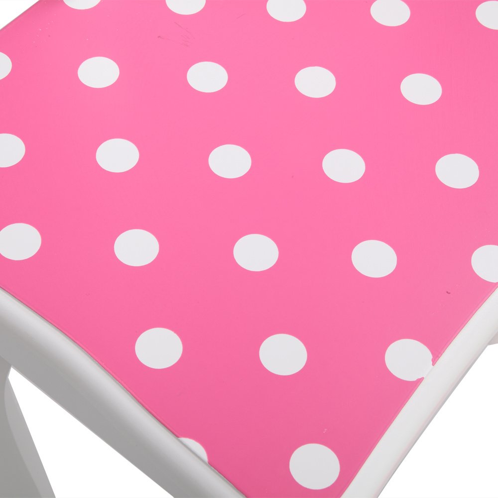 1.Features a pink and white design with polka dots for a fun play set .