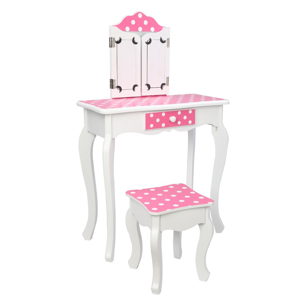 Wooden Vanity Set with Tri-Fold Mirror and Chair Table & Stool Set, Pink/White  YJ Wooden Vanity Set with Tri-Fold Mirror and Chair Table & Stool Set, Pink/White  YJ Wooden Vanity Set with Tri-Fold Mirror and Chair Table & Stool Set, Pink/White  YJ Wooden Vanity Set with Tri-Fold Mirror and Chair Table & Stool Set, Pink/White  YJ Wooden Vanity Set with Tri-Fold Mirror and Chair Table & Stool Set, Pink/White  YJ Wooden Vanity Set with Tri-Fold Mirror and Chair Table & Stool Set, Pink/White  YJ