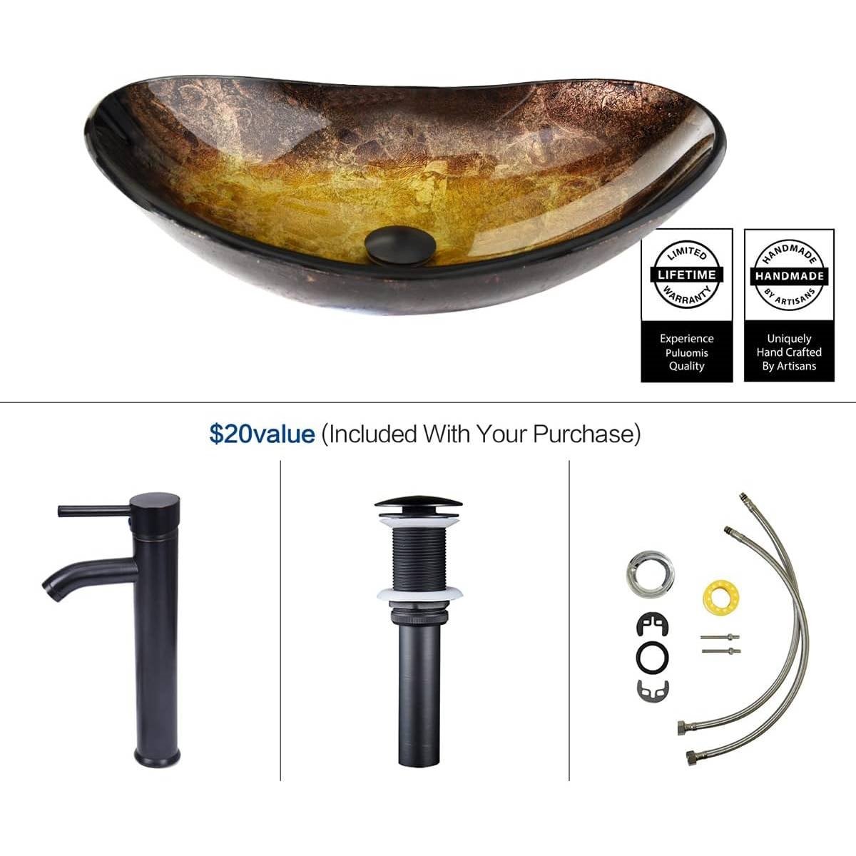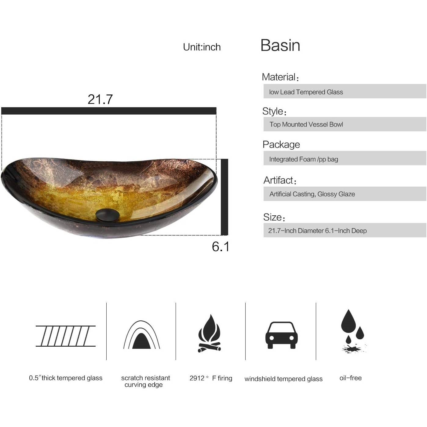 This Modern Bathroom Vanity in Rustic Farmhouse Wood Finish with Gold Glass Sink is made of Eco-MDF wood for long-lasting durability. Careful Coverage and Eco paint enable durability. Sliding Door Design -- Unlike traditional doors, sliding doors feel a sense of fashion. Open space meets various storage requirements. Cabinet: 19" x 24" x 31.5"(D×W× H); Sink dimension: 21.7" x 6.1" (WxD); Bowl thickness: 0.5". Come with Vanity, Glass sink, ORB Faucet, Pop up drain, Hot/ cold lines, and some mounting hardware. Modern and stylish design fit perfectly with most bathroom decor; Easy installation.