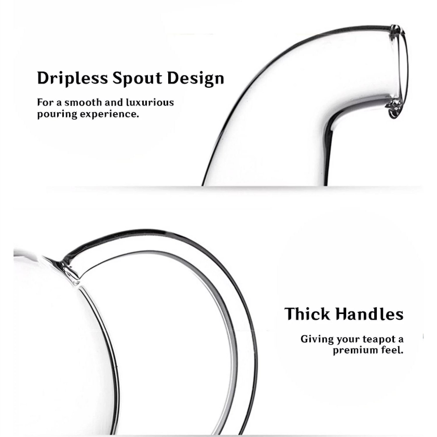 • 33.8 oz/ 1 Liter Borosilicate Glass Teapot with Removable Filter Infuser