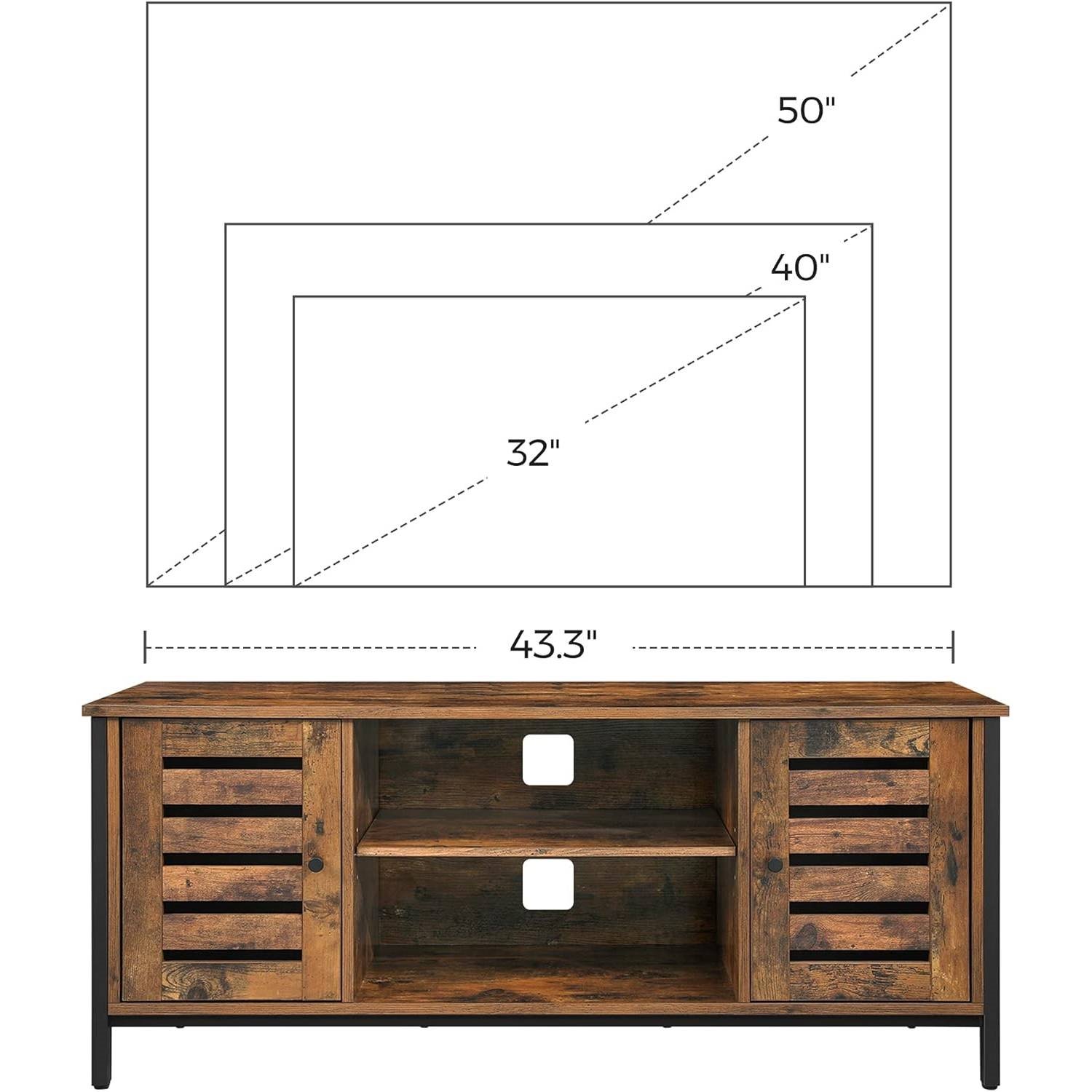 Your favorite movies? A collection of video games? Books you love to read? This Modern Mid-Century Industrial Metal Wood TV Stand for TV up to 50-inch does more than just hold your TV—the attractive louvered doors bring extra storage function to your living room and are brimming with style. Some items are bigger than others, and we get that—that’s why this TV console unit boasts an adjustable shelf with 3 height options in the middle, making it easier for you to fit taller items where you need them. The days of spending hours assembling furniture are long gone; with easy-to-follow instructions, you can have this TV cabinet with storage ready before your favorite show comes on. Who likes wobbly furniture? Not us! That’s why each metal leg on this stable TV stand has an adjustable foot underneath, keeping everything stable and in place.