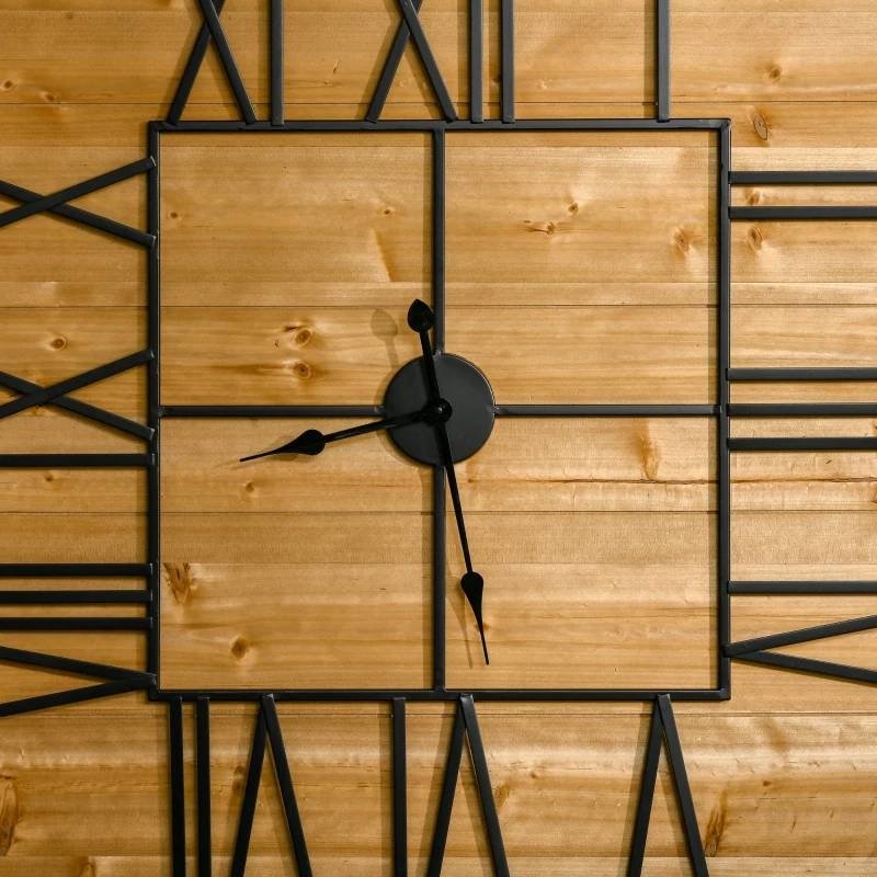 • Rustic style, square shape, the combination of metal and wood, open face, large hands, Roman numbers