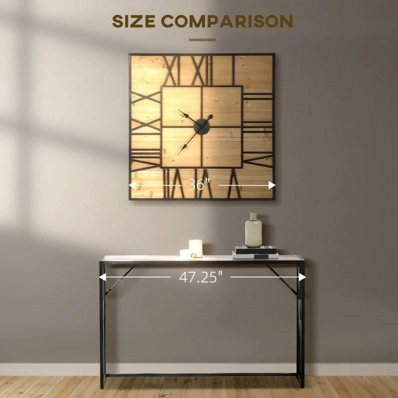 Large 36-inch Square Roman Numerals Wall Clock Wood Farmhouse Silent Non-Ticking