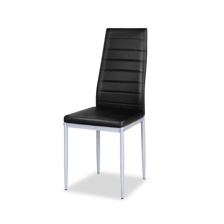 Compared to other normal height dining chairs, this Set of 4 Modern High Back Black PVC Leather Dining Chairs with Metal Legs offers extra comfort while you can lean on it with full relaxation of your whole back. It provides strong support for entire back. You will feel relaxed and it helps you reduce fatigue at dinner time. The seat softly padded with high density sponge allows you to comfortably sit. It gives you relaxation for a pleasant dinner time without stiffness after sitting for a period of time. The feet have thoughtfully designed foot caps to protect the floor. You can sit comfortably without worrying about scratches on the floor. The chair uses steel frame to ensure stableness and solidness. It is durable and lasts for a long time without damage or does not easily bend after a period of time' use. We use a specially customized high-grade PVC as the chair fabric, durable and comfortable to sit, bringing luxury atmosphere to dining room.