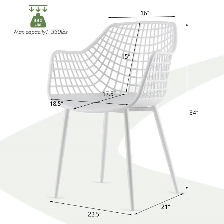 With smooth line and mesh pattern, the Set of 4 Modern Mid-Century White Mesh Dining Chair with Ergonomic Backrest will a perfect addition to different rooms. Meanwhile, each chair can be used as your dining chair, leisure chair or office chair, which can meet your different needs. The reclining backrest can wrap your body perfectly for spine protection and waist relaxation, offering you "mother-like" hug. Besides, the wide backrest also features airy hollow design to ensure a cool and comfortable feeling when you lean on the back of this chair. Measuring 18.5"(L) x 17.5"(W),the comfortable seat provides you with enough resting area. Apart from that, the seat with a curved surface fits well with your body curve and greatly supports your hip as well as thighs to relax muscles. Equipped with powder-coated metal legs, each chair allows for excellent wear resistance, outstanding stability and high load bearing capacity, Plus, anti-slip foot pads enhance overall sturdiness and protect the floor from being scratched. Coming with a clear user manual and complete hardware, the dining chair can be easily installed in a few steps. You won't get stuck into assembly. And the finished dimension of each chair is 22.5" x 21" x 34"(L x W x H). Its weight capacity is 265 lbs.