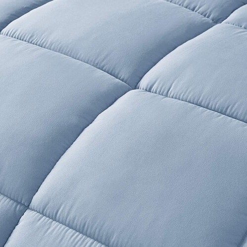 Give yourself peace of mind and sleep in pure comfort each and every night with the Queen Size Reversible Microfiber Down Alternative Comforter Set in Blue. A lightweight and breathable comforter with year-round use, this comforter is made with a soft microfiber polyester fabric and filled with poly fibers. The seams are stitched with double-needle piped edges for enhanced strength which create walls between top and bottom layers, preventing the filling from escaping as well as an aesthetically pleasing appearance. For easy home care, simply machine washes cold and tumble dry low. The comforter remains wonderfully soft and fluffy with no fade or shrinkage.