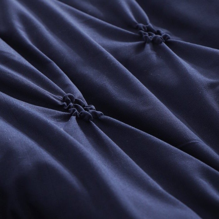 Update your sleep space with this King Size All Season Pleated Hypoallergenic Microfiber Reversible 3 Piece Comforter Set in Navy. This comfy comforter set is made from microfiber (90gsm fiber), which is cozy, soft, and smooth. The microfiber comforter comes with warmth better than other fabrics but avoids heaviness. Add a touch of elegance to your bedroom. This luxurious quilt cover comforter feature a delicate floral pleated pattern that adds layers like beautiful flowers blooming in order on your bed. Neutral colors complement your existing room décor. Comforter is double-stitched all around, so the padding won't shift or clump over time and retains its shape even after multiple machine washes and dryings.