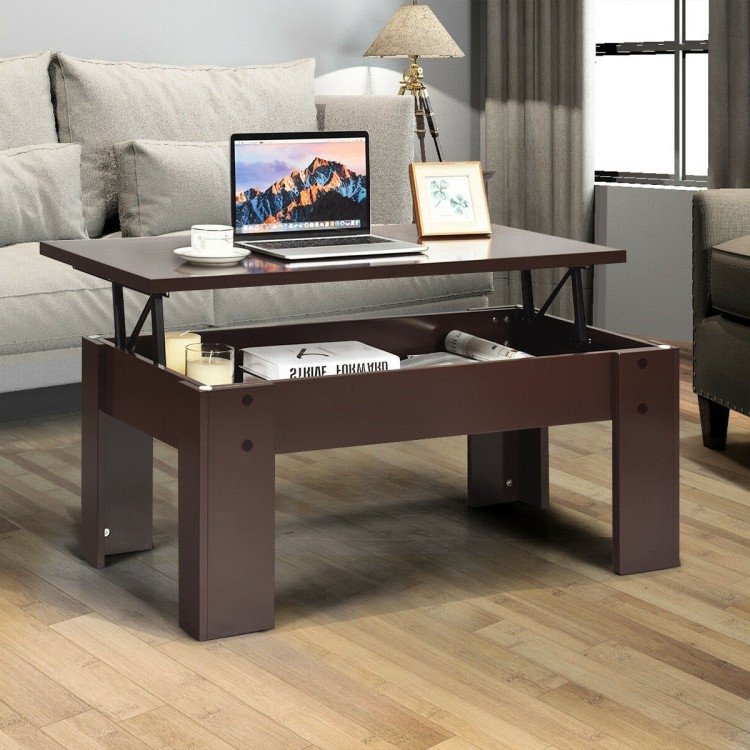 This Farmhouse Espresso Brown Lift-Top Multi Purpose Coffee Table can be lifted up and forward effortlessly to create a versatile working surface so you can relax on the couch and reach your laptop without leaning forward. A hidden compartment under the top is large enough to store your often-used items, like books, chess, game consoles, etc. What's more, it is made of premium MDF to ensure sturdy structure and strong weight capacity.