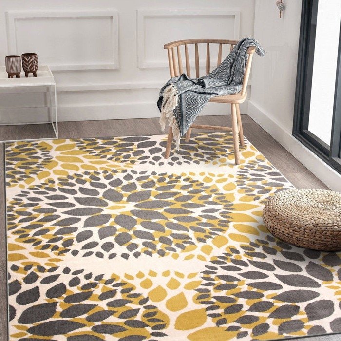 This bright area rug showcases a fun bright yellow and grey floral pattern that delivers a traditional look and feel to your floors. This rug is power-loomed from polypropylene with a stain-resistant design, so it stands up to occasional spills and it has a jute backing. The yellow and grey color palette is just right for warming up your space. Also, has a low 0.31" pile height that's designed to stand up to your family's comings and goings in your entryway or out on the porch. This beautiful rug includes a backing, but we recommend pairing it with a rug pad to keep it securely in place.
