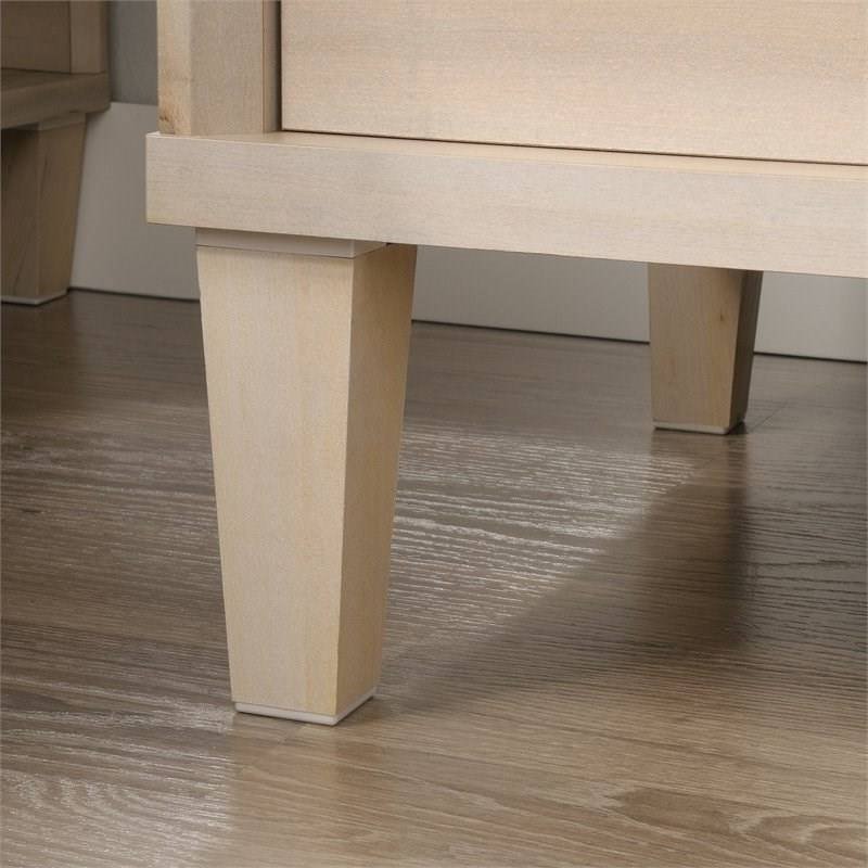 Give your bedroom a fresh look when you add the charming and functional design of this Light Maple Wood Farmhouse Style 1-Drawer Nightstand with Open Shelf. This bedside table with storage offers a spacious top surface to set items like your alarm clock, table lamp, coasters, and smartphone. Its open shelf provides easy-access storage for remotes, a bedside book and reading glasses. Plus, the nightstand with drawer opens and closes on smooth metal runners, providing a convenient holder for magazines, and other items. This single-drawer nightstand features a strong and lightweight 1” panel construction that makes it easy to move throughout your home. The back panel also includes cord management to keep wires neat and hidden. Finished in Light Maple and accented with tapered feet and soft chamfered edges, this attractive nightstand with storage is just what your bedroom is missing.