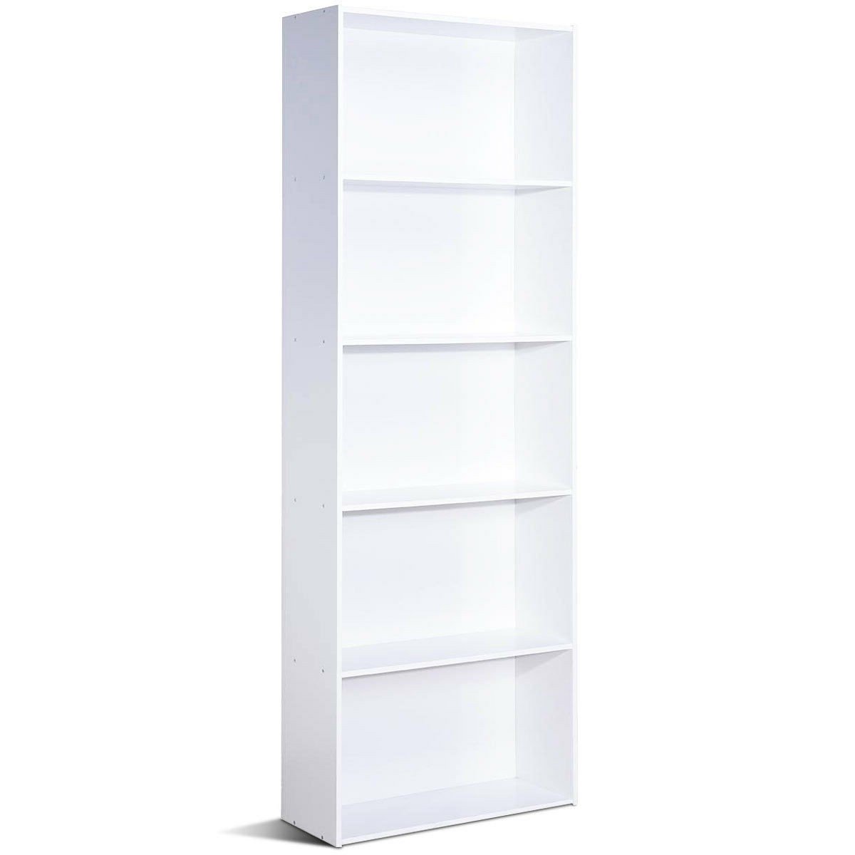 Home > Modern 5-Tier Bookcase Storage Shelf in White Wood Finish