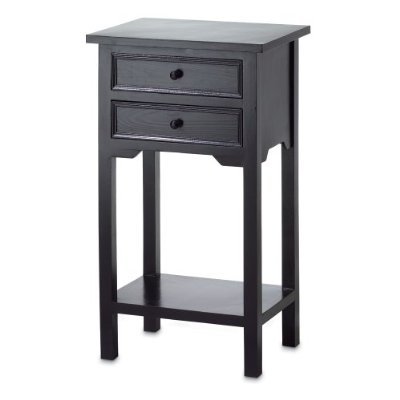 This Set of 2 Nightstand Side Tables / End Table in Black Finish Pine Wood is tastefully finished so that the pine wood's natural grain is still visible through the black stain. Measures 15 3/4" x 11 5/8" x 27 1/3" high.
